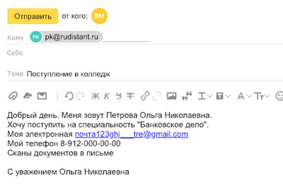 Отправить заявку по адресу Приемной комиссии Финансово-экономического колледжа, указав ФИО, номер телефона, действующий email, название выбранной специальности. Адрес электронной почты приемной комиссии: