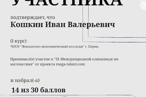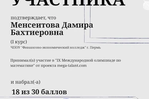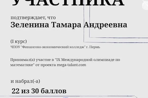 Студенты колледжа, учащиеся первого курса, приняли участие в IX Международной олимпиаде по математике под руководством Ирины Викторовны Якутовой.