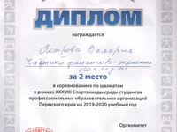 В турнире по шахматам в личном зачете 2-е место заняла Петрова Валерия.