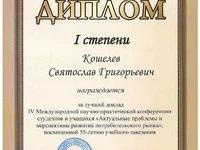 По итогам международной конференции Святослав Кошелев награжден дипломом I степени, а Евгений Федосимов – дипломом II степени.