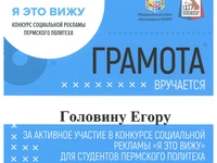 Студент группы ПИ 1-18(9) Егор Головин принял участие в ежегодном конкурсе социальной рекламы «Я это вижу».