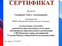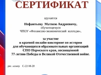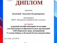 Студенты нашего колледжа участвовали краевой онлайн-викторине по истории для обучающихся образовательных организаций СПО Пермского края, посвященной 77-летию Победы в Великой Отечественной войне.