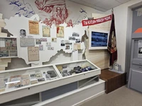 В выставочном зале студенты увидели основную экспозицию музея, посвященную истории одному из самых молодых предприятий Гознака — Пермской печатной фабрике.