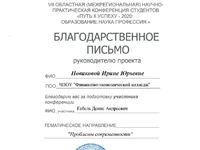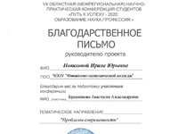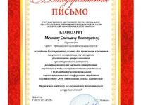 Также организаторы конференции наградили благодарственным письмом директора ЧПОУ «Финансово-экономический колледж» Мешкову Светлану Викторовну за создание благоприятных условий для проявления и развития творческой инициативы обучающихся.