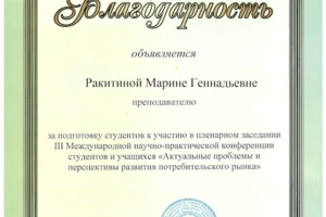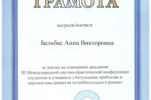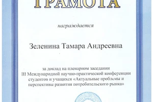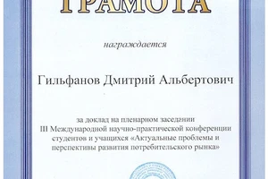 От Колледжа выступили Анна Бельбас (под руководством Ракитиной М.Г.), Айдар Маликов, Тамара Зеленина и Дмитрий Гильфанов (под руководством Желтовских Е.В.). Ребята рассказали о перспективах среднего бизнеса и об инновационных методах в обслуживании клиентов. Дмитрий Гильфанов был награжден Дипломом 1 степени, а Тамара Зеленина была награждена дипломом 3 степени.