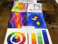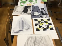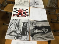 Ребята представили работы, выполненные в течение семестра по рисунку и живописи: зарисовки и многофигурные композиции, стилизованные натюрморты.